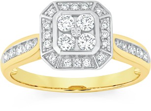 Alora 9ct Gold Lab Grown Diamond Round Brilliant Cut Asscher Shape Cluster Ring Total Weight = .50ct