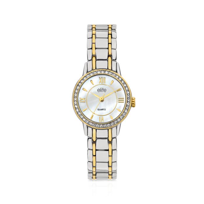 Timeless Radiance with a Modern Touch. The Pippa Watch brings refined elegance to the everyday. With its graceful two-tone silver and gold finish, crystal-studded bezel, and three-hand movement, it offers both precision and polish in one sleek silhouette. Roman numeral markers at the quarter hours add a classic charm, while the slim bracelet design ensures a comfortable, sophisticated fit. Whether you're dressing for a day at the office or an evening out, the Pippa Watch is a versatile accessory that enhances any look with quiet confidence.