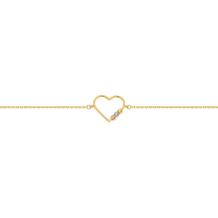 9ct 19cm 3-Tone Dia-cut Beaded Open Heart Bracelet2171120
