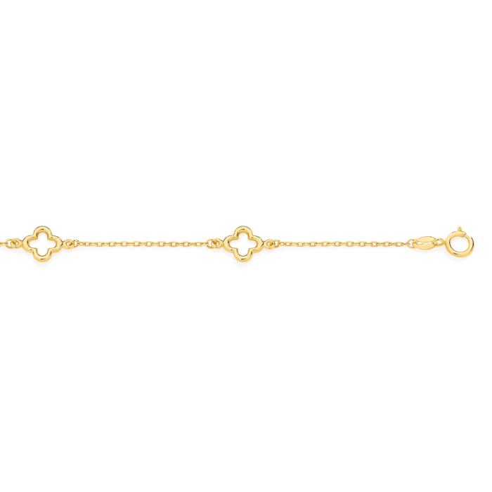 9ct Gold 19cm Multi Open Clover Solid Trace Bracelet