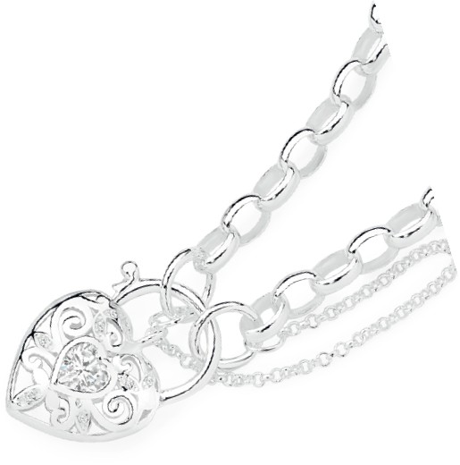 Sterling Silver CZ 19cm Belcher Padlock Bracelet1141126