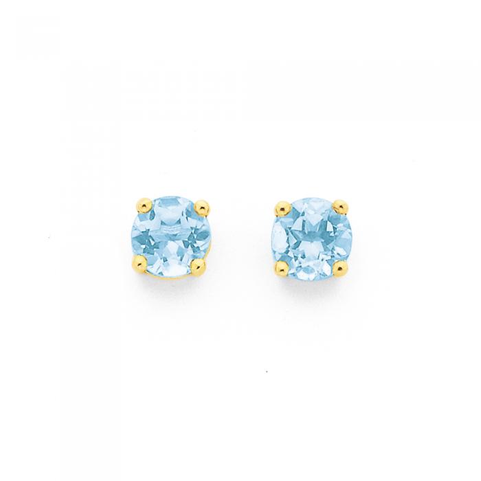 9ct Gold 5mm Blue Topaz Round Brilliant Cut Stud Earrings