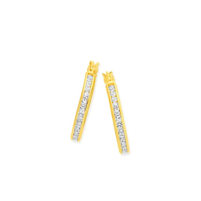 9ct Gold 14mm Cubic Zirconia Round Brilliant Cut Channel Set Hoop Earrings