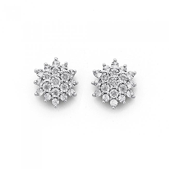 9ct Gold Diamond Miracle Set Starburst Cluster Stud Earrings. Approximate Size= 8mm x 8mm.