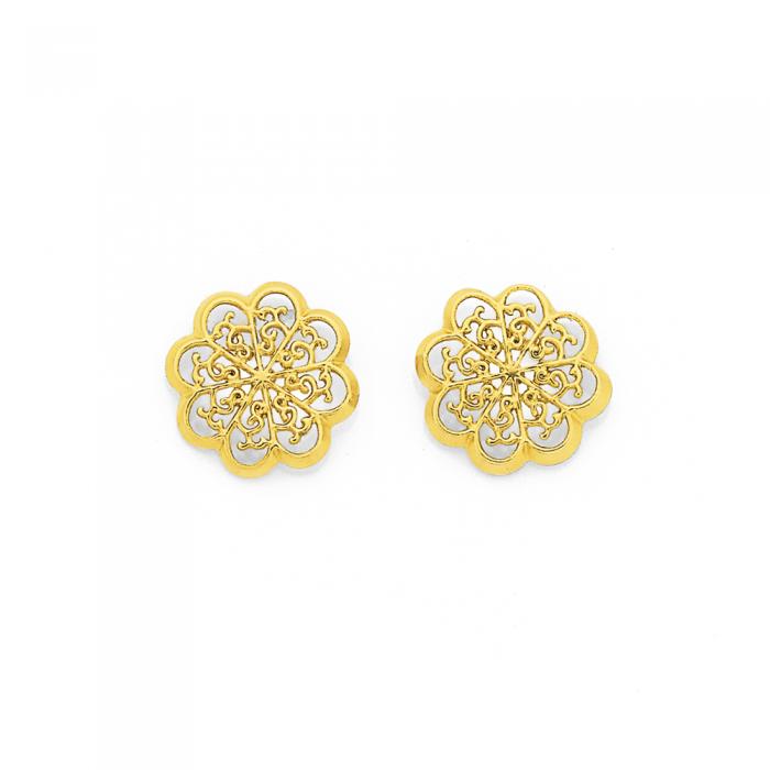 9ct Gold Filigree Flower Stud Earrings 2469286