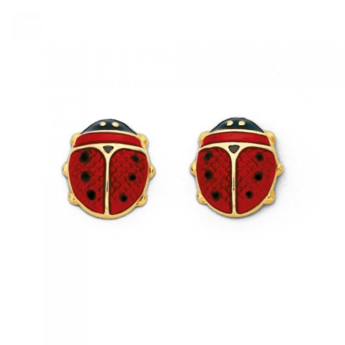 Italian Made 9ct Gold Red Enamel Ladybird Stud Earrings. A cute pair of ladybird stud earrings crafted in 9ct yellow gold red enamal. A perfect gift for your little ladybug.