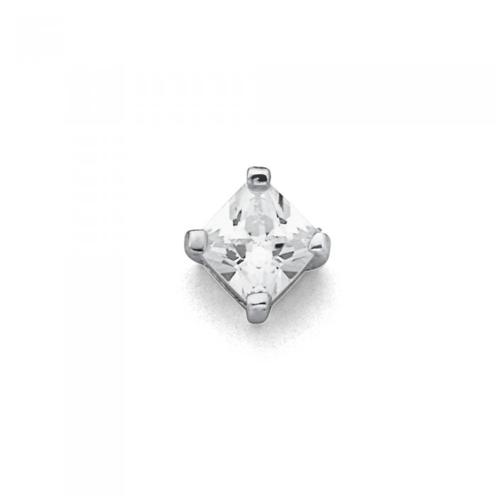 Sterling Silver 5.5mm Square Single Cubic Zirconia Stud1601554