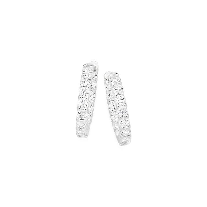 Sterling Silver Cubic Zirconia 2.5x18mm Inside Out Huggie Earrings