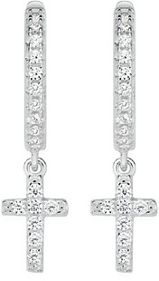 Sterling Silver CZ Cross Drop Huggie Earrings1611151