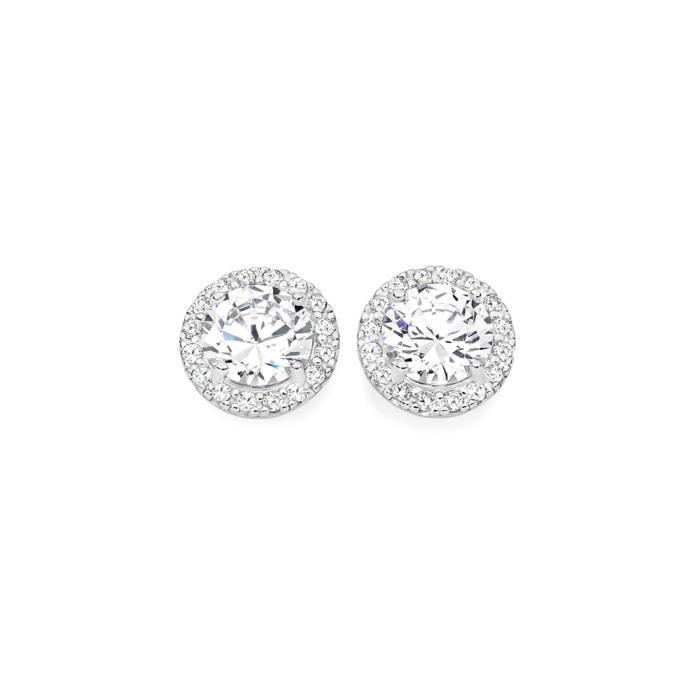 Sterling Silver CZ Halo Stud Earrings 1609257