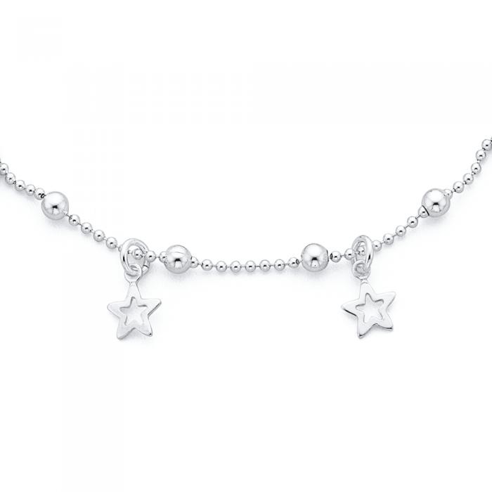 Sterling Silver 25cm Multi Stars Beaded Anklet