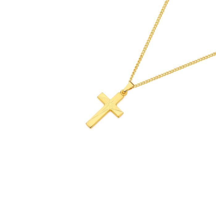 9ct Gold 18mm Matte & Polish Lined Star Center Cross Pendant
