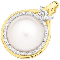 9ct Gold Cultured Mabe Pearl and Diamond Enhancer Pendant