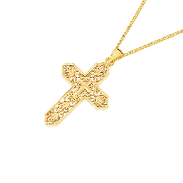 9ct Gold 30mm Diamond-cut & Filigree Gothic Cross Pendant. Approximate Dimensions - 22mm Width x 37mm Height including bail.