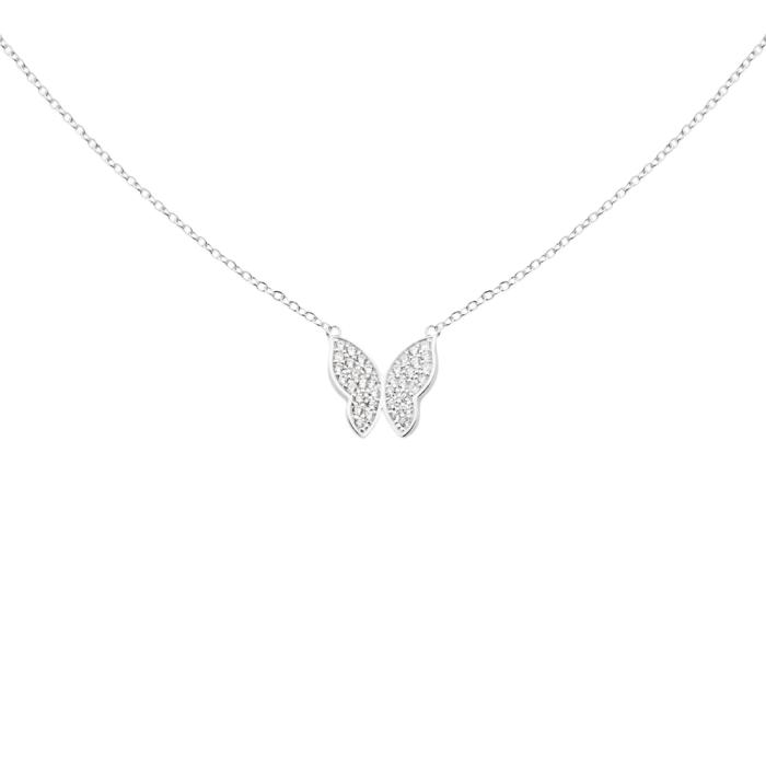 Sterling Silver 35+5cm Pave Cubic Zirconia Butterfly Necklet