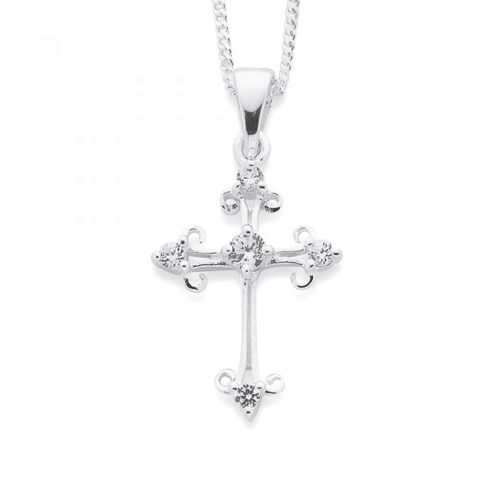 Sterling Silver CZ Gothic Fine Cross Pendant 1701272