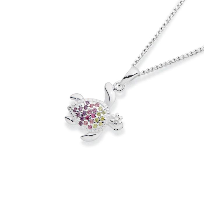 Sterling Silver Multi-Colour Cubic Zirconia Turtle Pendant. Matching Stud Earrings Available SKU 1531010.