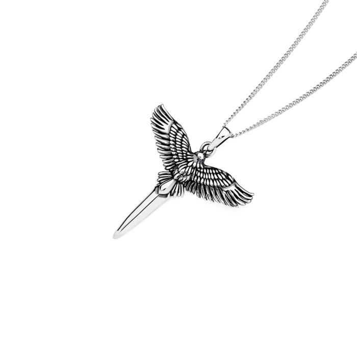 Sterling Silver Oxidised Eagle & Dagger Men's Pendant