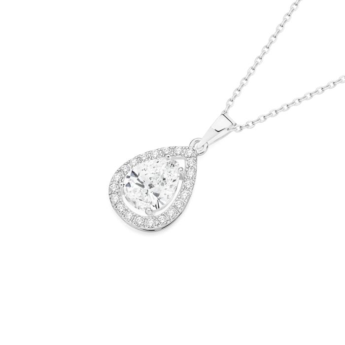 Sterling Silver Pear CZ Halo Pendant 1701618