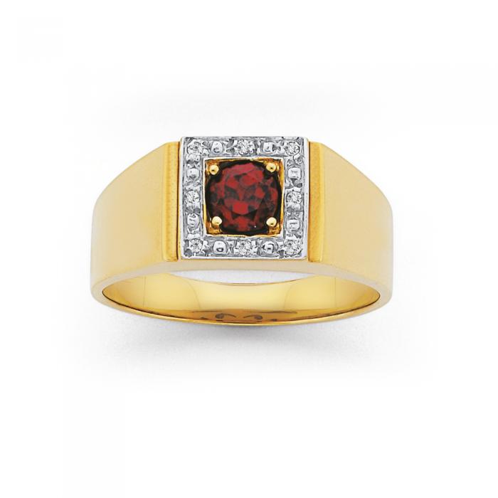 9ct Gold Diamond & Created Ruby Square Top Gents Ring - Available in Sizes U,W, Y