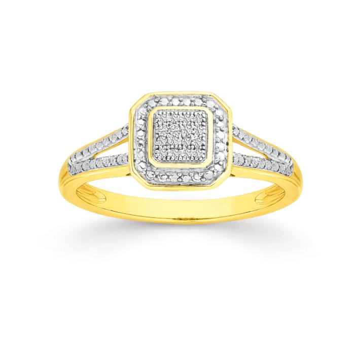 9ct Gold Diamond Pave Set Cushion Shape Split Shoulder Ring8641234