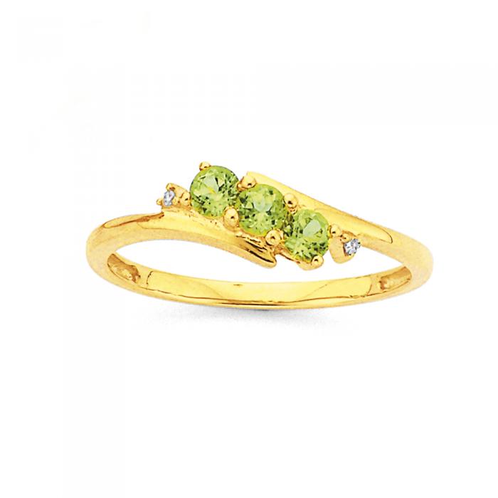 9ct Gold Peridot & Diamond 3x Round Brilliant Cut Offset Ring7531031