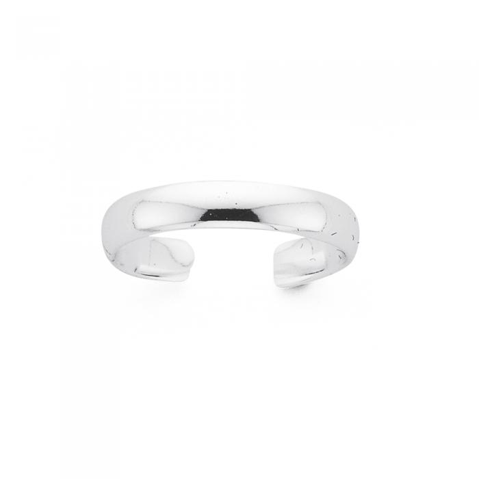 Sterling Silver Half Round Profile Polished Finish Plain Toe Ring - 4mm Approximate Width
