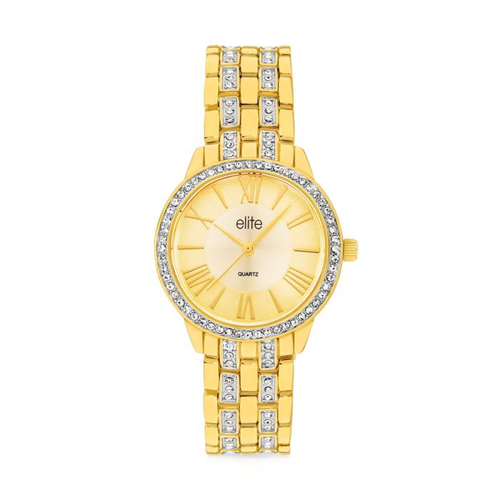 Bold, brilliant, and beautifully refined the Charlie watch is made to dazzle. Featuring a radiant gold-tone finish throughout, this timepiece commands attention with its dual-row crystal-set bracelet and sparkling crystal bezel. The champagne sunray dial is adorned with elegant Roman numerals, giving it a classic touch that balances the shimmer with sophistication. Whether you're dressing up for a special event or adding a touch of glamour to your everyday style, Charlie is your go-to for timeless sparkle.