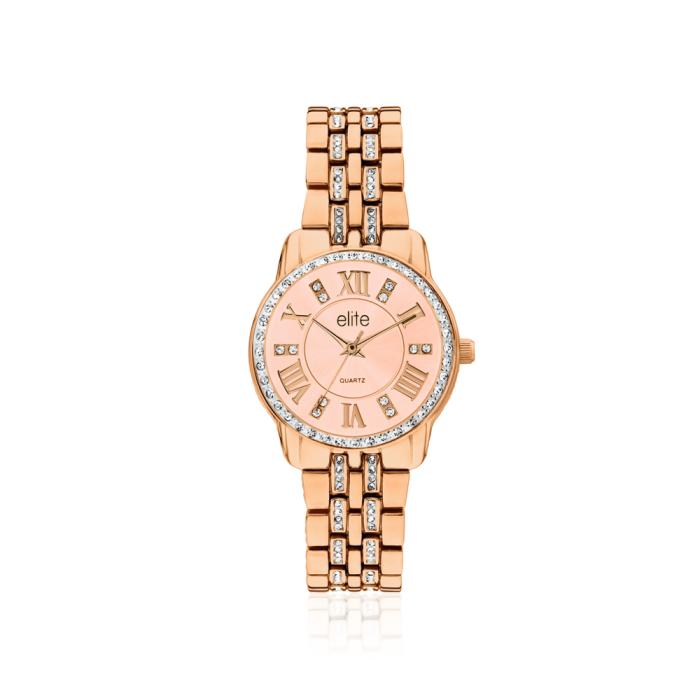 The Heritage watch is a timeless statement piece that blends classic charm with modern refinement. Crafted in a radiant rose gold-tone finish, it features a multi-link bracelet adorned with sparkling crystals for a touch of opulence. The soft rose dial is elegantly set with bold Roman numerals and crystal accents, framed by a crystal-encrusted bezel that catches the light from every angle. Designed for those who appreciate both tradition and sophistication, Heritage is perfect for elevating your everyday style or adding grace to formal occasions.