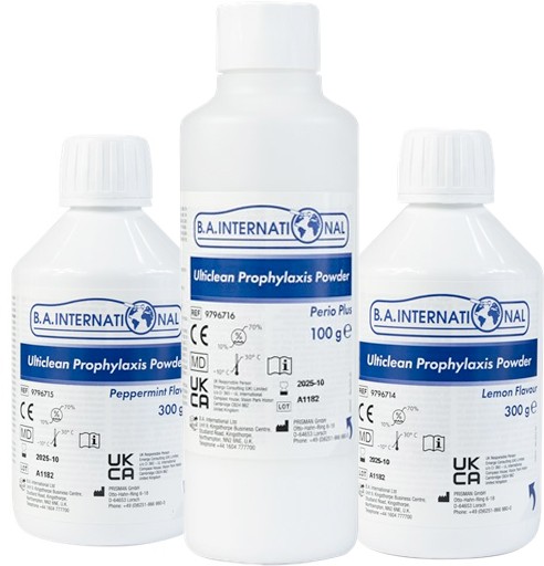 300g bottles 4pk (Mint or Lemon).100g Perio Plus Powder bottles 4pk.