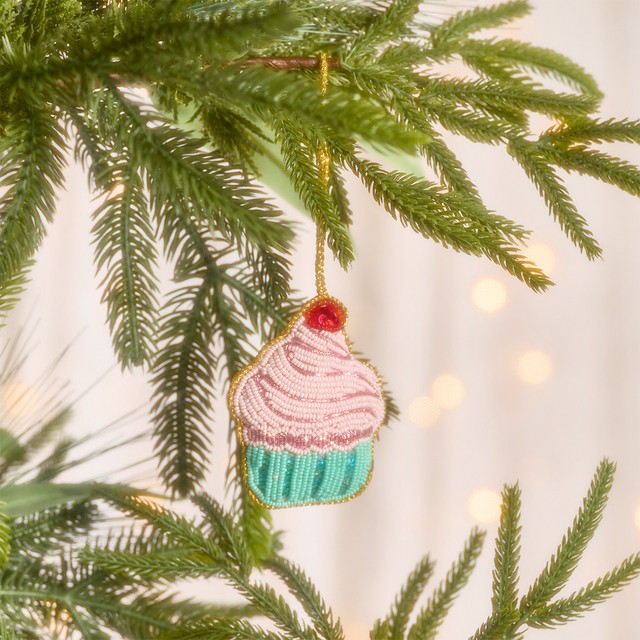 Beaded Candy Cupcake Hanging Christmas Decoration by Pillow Talk
