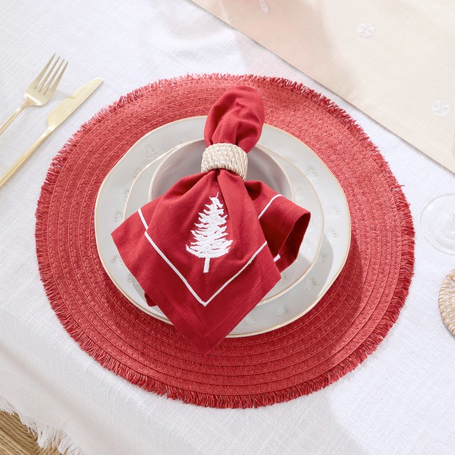 Festive Christmas Tree Embroidered Napkin 4 Pack by Pillow Talk