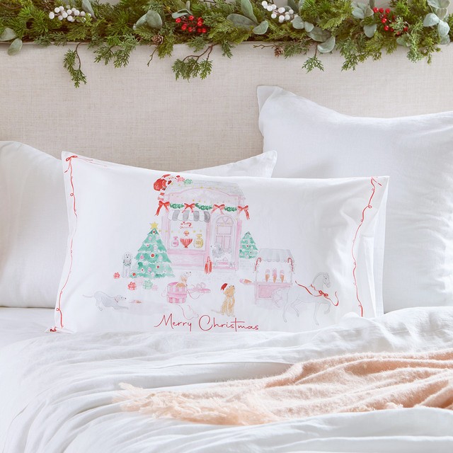Petite Ville Christmas Pillowcase by Pillow Talk