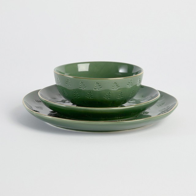 Christmas Tree Gold Rim Green Dinnerware by Pillow Talk