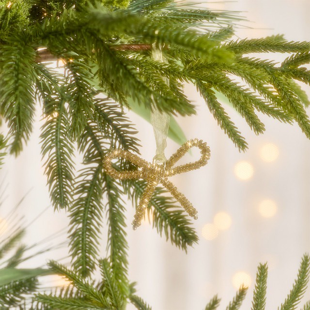 Rosie Gold Beaded Bow Christmas Hanging Decoration by Pillow Talk