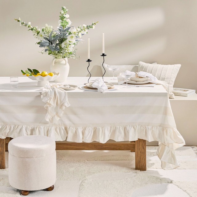 Piper Natural Stripe Ruffle Table Cloth by Habitat