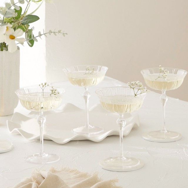 Mila Ribbed Cocktail Coupe Crystal Glass Set of 4 by M.U.S.E.