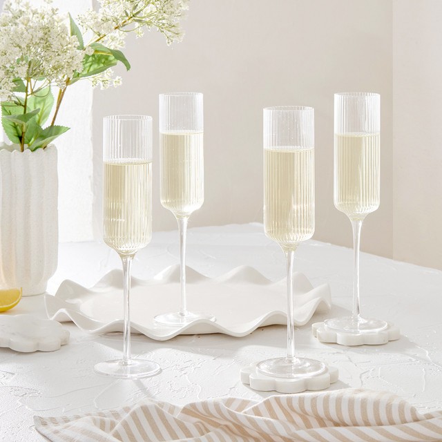 Mila Ribbed Champagne Crystal Glass Flute Set of 4 by M.U.S.E.