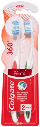Colgate 360° Optic White Platinum Medium Toothbrush 2 Pack
