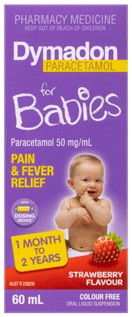 Dymadon Paracetamol For Babies 1 Month-2 Years Colour Free Strawberry Flavour 60mL