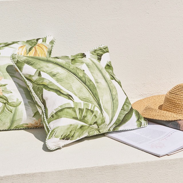 Sundays Tropical Havana Leaf Outdoor Square Cushion by Pillow Talk