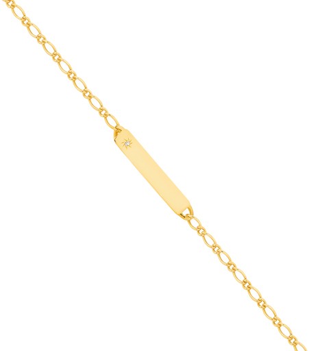 Italian Made 9ct Gold 16cm Solid Figaro 1+1 Diamond-set Engravable Identity Bracelet