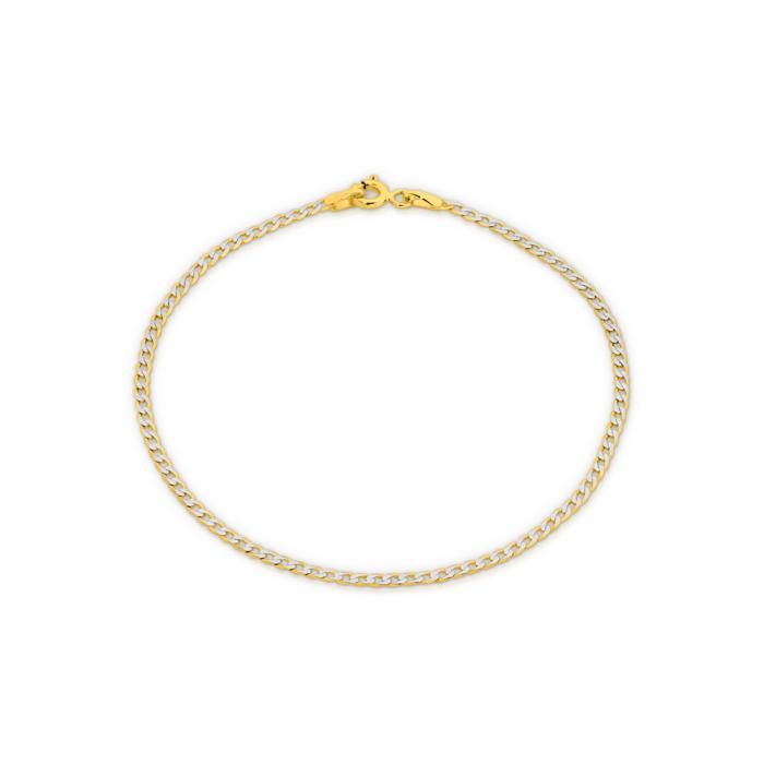 9ct Gold Two Tone 19cm Solid Diamond-Cut Curb Bracelet