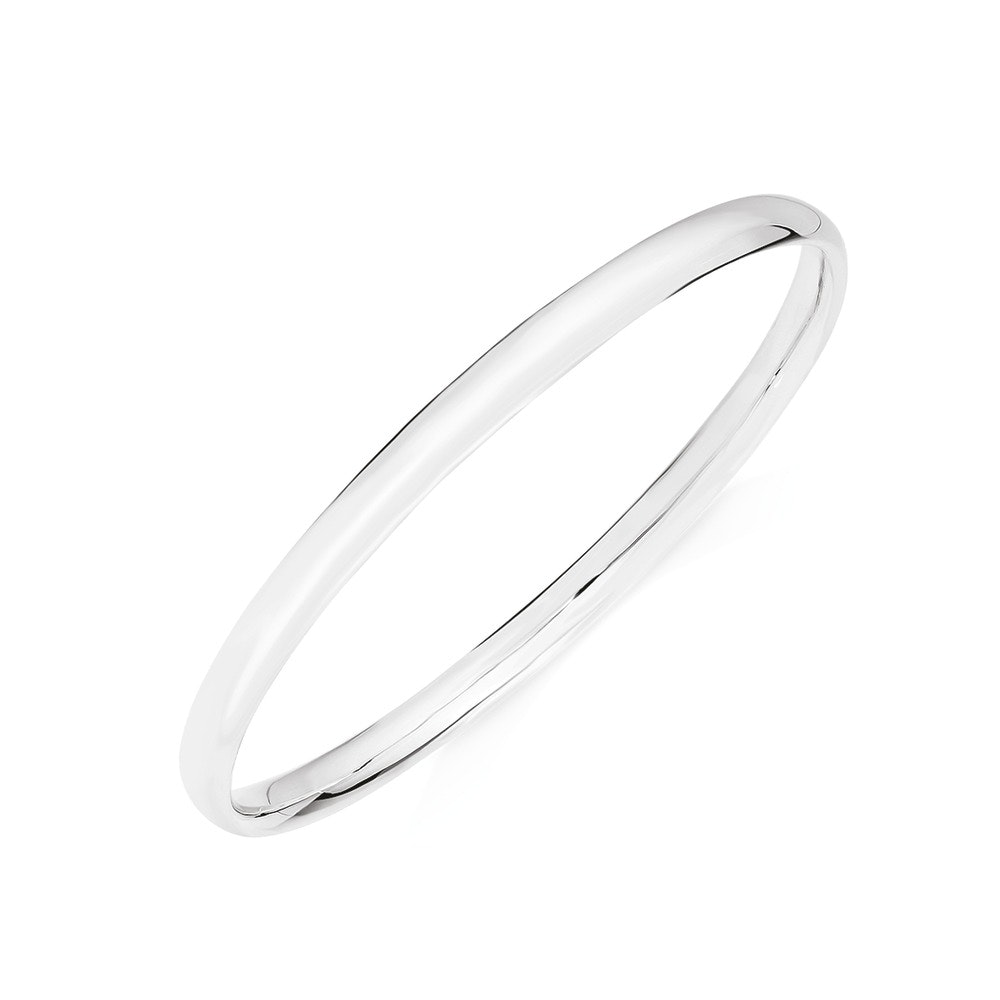 Solid Sterling Silver Polished Finish Half Round Profile Child Bangle - Approximate Dimensions 4mm Width x 50mm Inner Diameter.