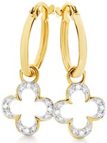 9ct Gold Diamond Clover Drop Hoop Earrings 8755388