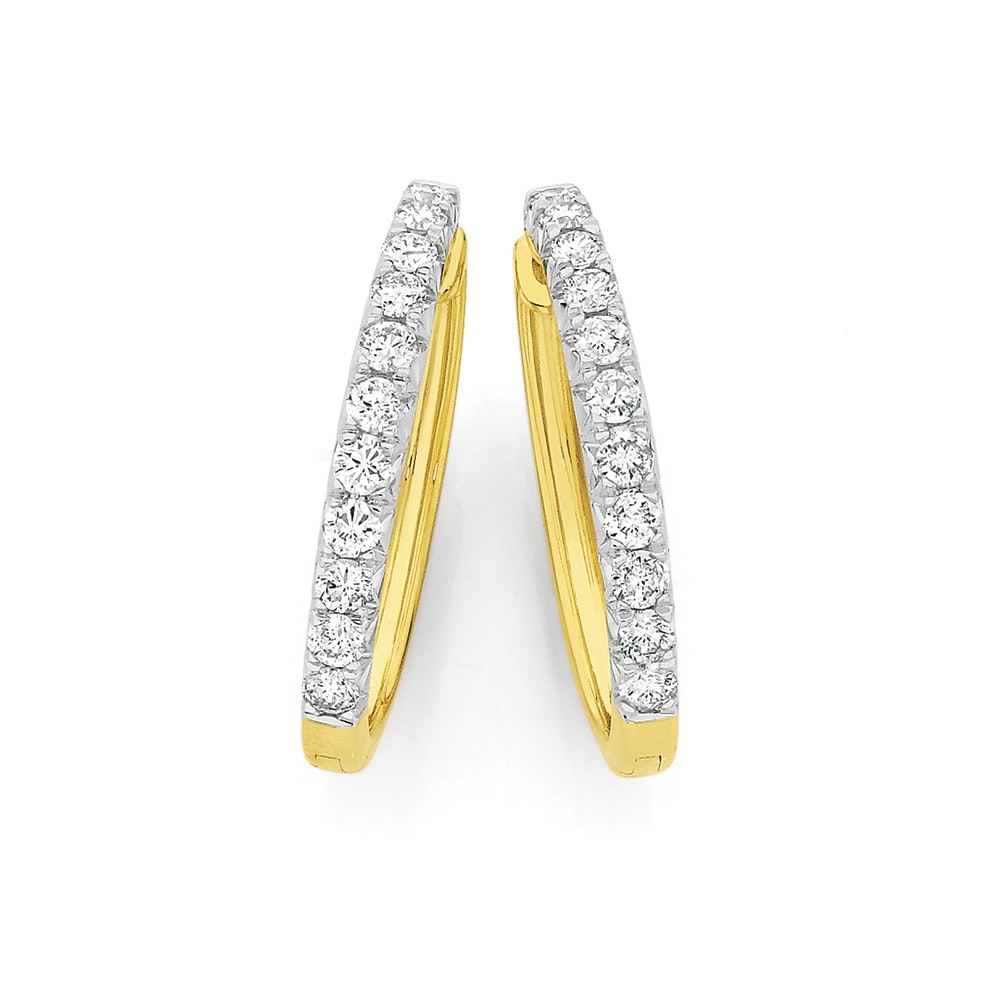 9ct Gold Diamond Round Brilliant Cut Pave Set Huggie Earrings Featuring 1 Carat of Diamonds. External Size = Approx. 23mm x 3mm.