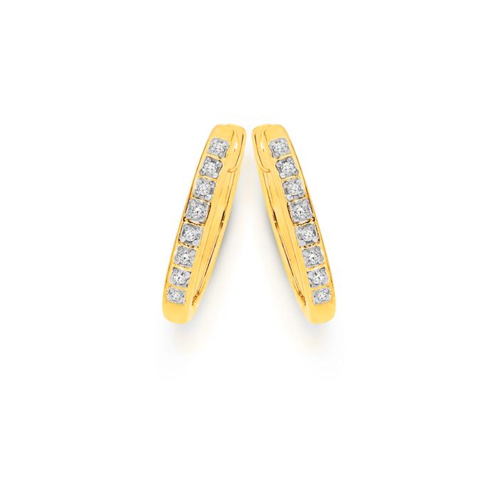 9ct Gold Diamond Pave Set Huggie Earrings. External Size= Approximately 13mm x 2mm.