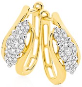 9ct Gold Diamond Trilogy Cluster Offset Huggie Earrings Total Diamond Weight = .15ct