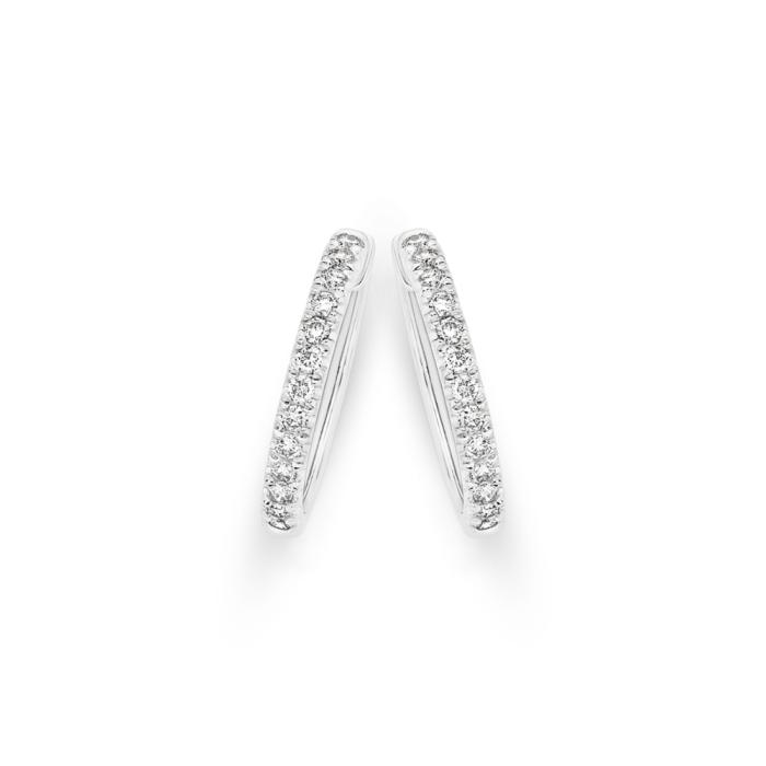 9ct White Gold Diamond Pave Set Huggie Earrings Total Diamond Weight=.34ct. External Size=Approximately 17mm x 3mm.