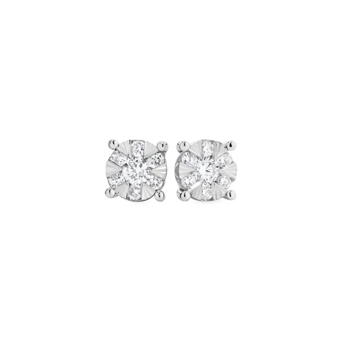 9ct White Gold Diamond Magic Facets Earrings Total Diamond Weight = .20ct Size= Approximately 4mm x 4mm.